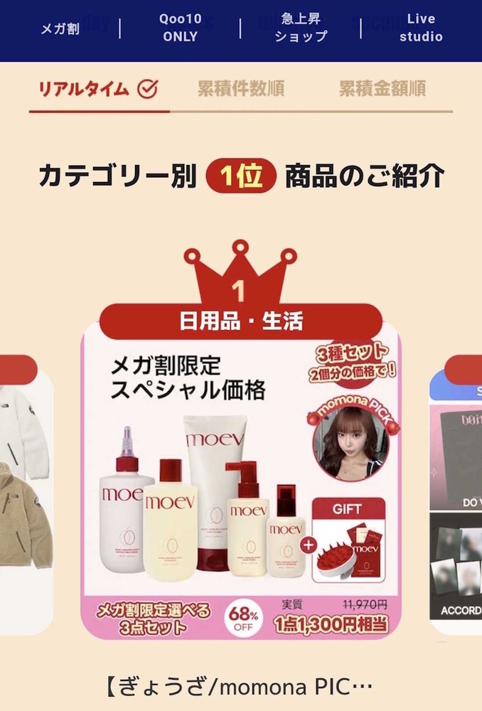 MOEV、Qoo10メガ割でカテゴリー1位を獲得日本市場で急成長